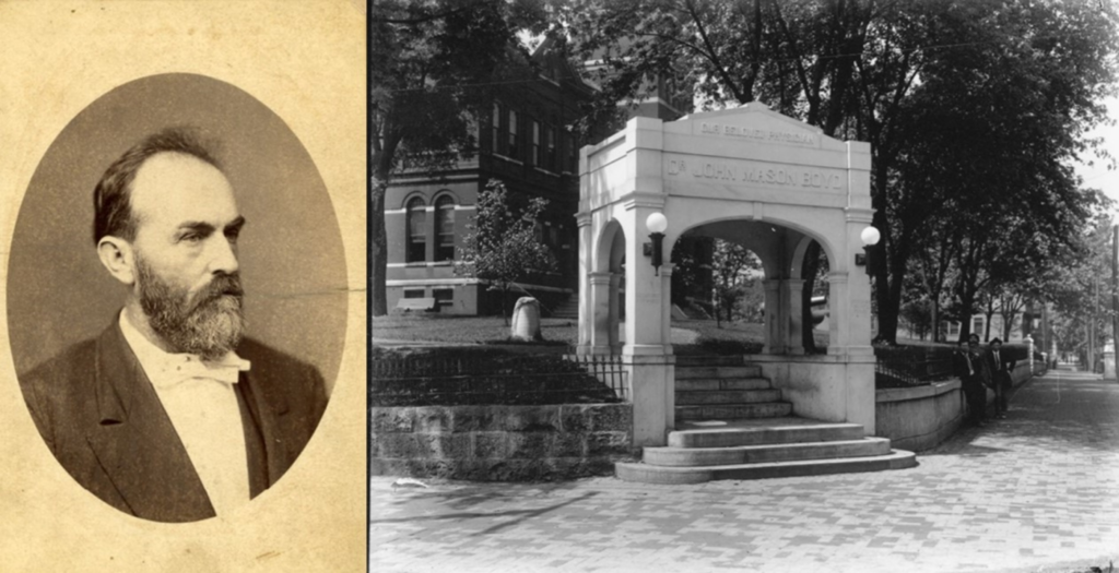 The steps of the Dr. John Mason Boyd memorial arch at the corner of Gay Street and Main Street offer a fine perch to ponder bygone times in this old section of downtown. Anyone who has more than just glanced over at the Knox County Courthouse and its lawn scattered with various monuments knows there is deep history on this southwest corner. For the most part, we’ll let “Our Beloved Physician, Dr. John Mason Boyd” be our guide for this story.