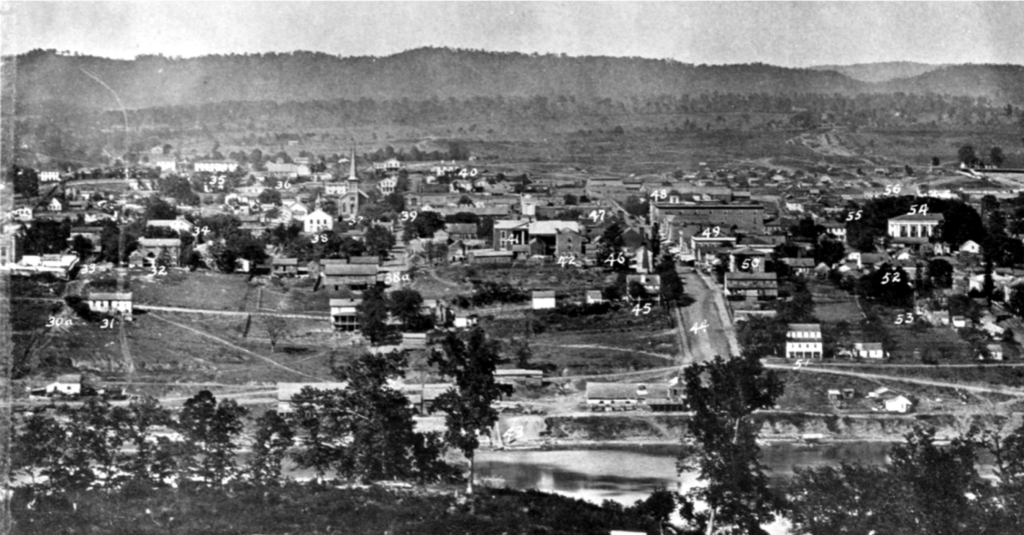 Part 3 of a four-part panoramic photograph of Knoxville, 1865. Photo courtesy of the McClung Historical Collection.