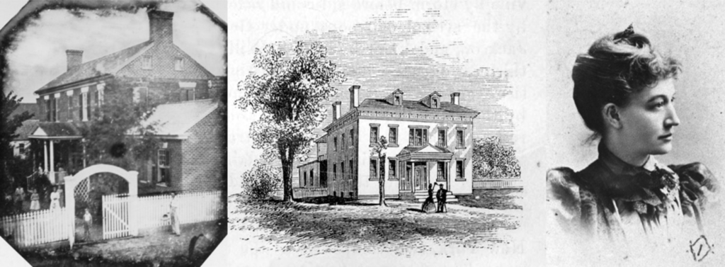 From left: A rare photograph of the rear of the Crozier House from the 1850s; how one artist envisaged the house and grounds to look when Gen. Burnside occupied it in 1863; and notable woman’s rights activist and suffrage leader Lizzie Crozier French. (McClung Historical Collection.)