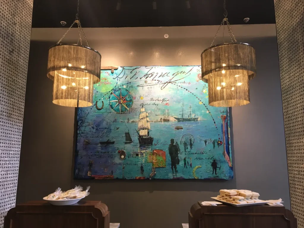 Andrew Saftel’s painting, inspired by Admiral David Glasgow Farragut, hanging behind the reception in the lobby of Hyatt Place (KHP.)