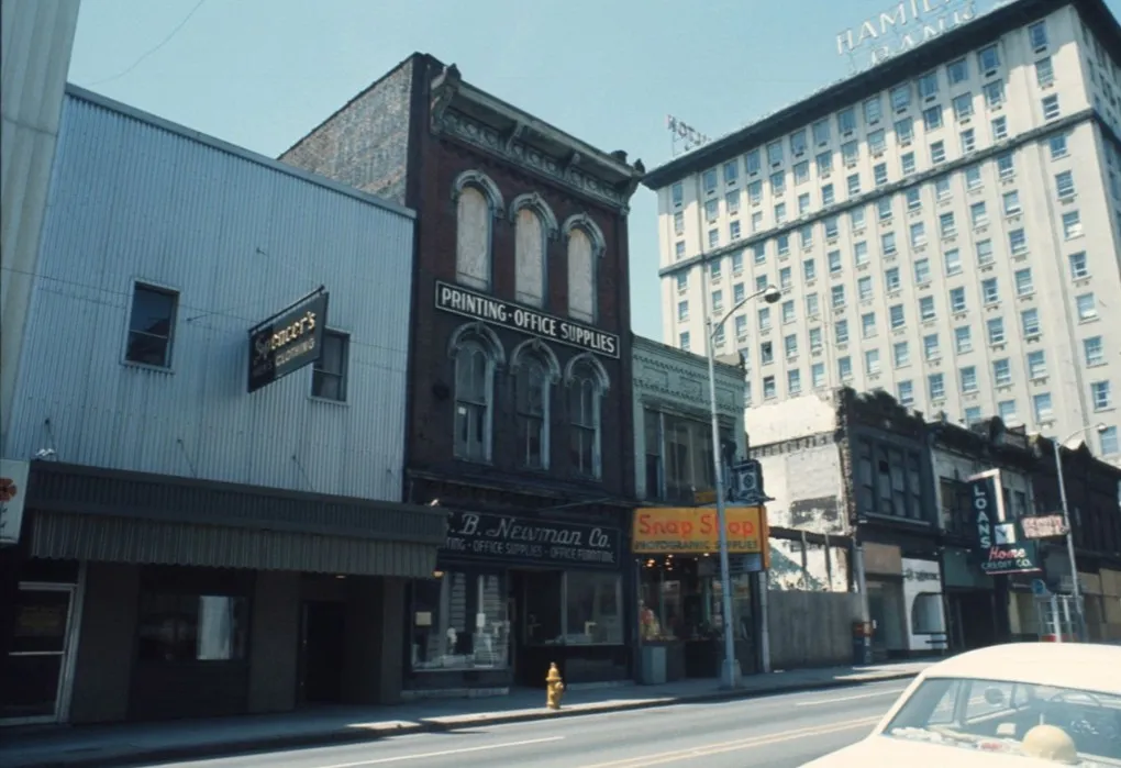 Still, the Fouche Block endured. One notable business lasted 40 years, yet most people probably didn’t even realize that was even there: Comer’s Sport Center. Located on the second floor, perhaps part of the old dentistry rooms, above later mainstays like the Brass Rail restaurant (run by Greek immigrant Frank Kotsianas), the colorful pool hall, run by Dick Comer, was immortalized by Cormac McCarthy in his classic Suttree (1979) and also one of his last titles, The Passenger (2022). At one time, Comer’s was known for its legendary burgers and beef stew, and also prided itself on being a “serious pool hall” that didn’t sell beer. But during its early days it was raided multiple times by police attempting to root out illegal gambling.