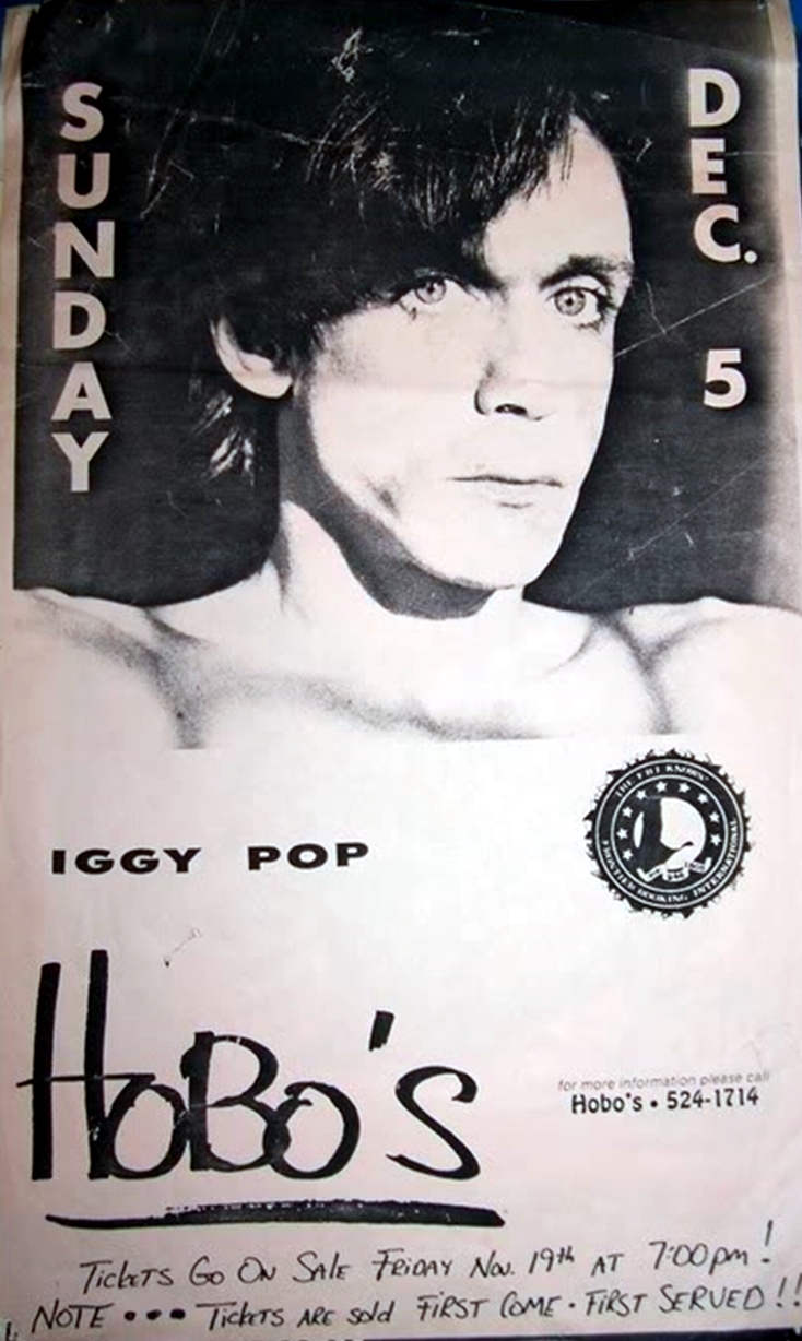1982: The legendary Iggy Pop played the last night of Hobos in December 1982. Notable for several reasons. The eternal rocker had played thousands of shows over his long career, but only once here in Knoxville. This short-lived but fondly remembered venue on the Strip hosted Iggy on its very last show: Hobos closed the same night. Encouraged by the club owner, Iggy waded into the packed crowd, and held aloft, began to pull down parts of the ceiling. Tip from Todd Steed: Search on YouTube for an interview Iggy did with Dave Letterman that same year and that's what Iggy looked like when he was here. (PJ)